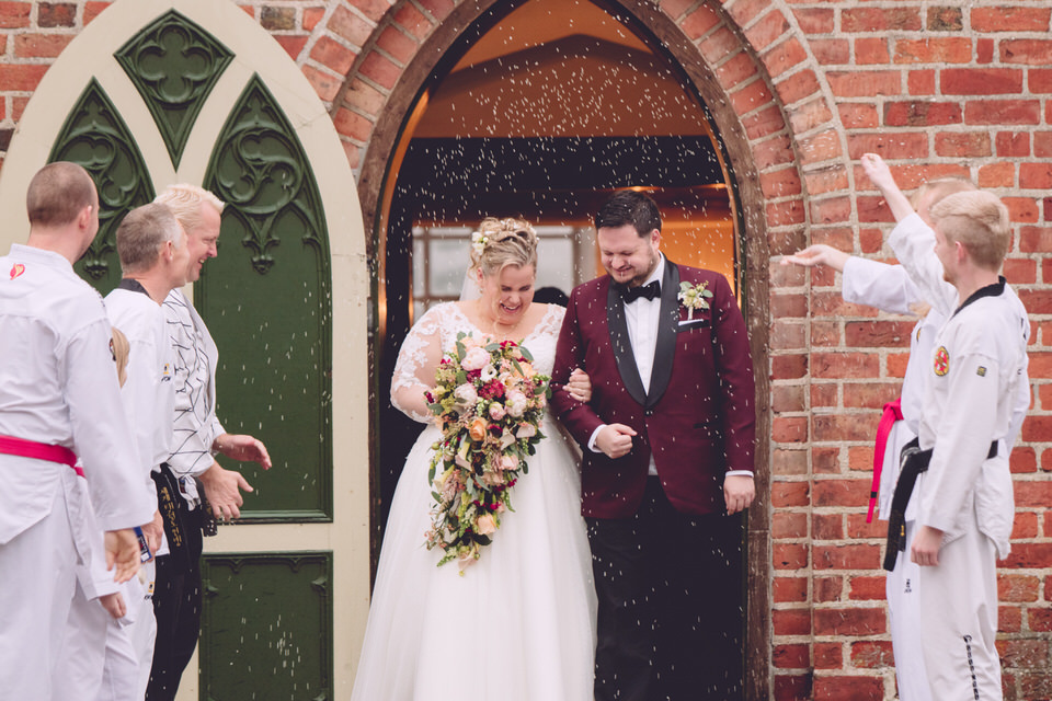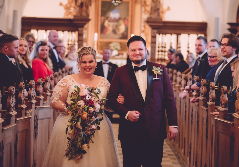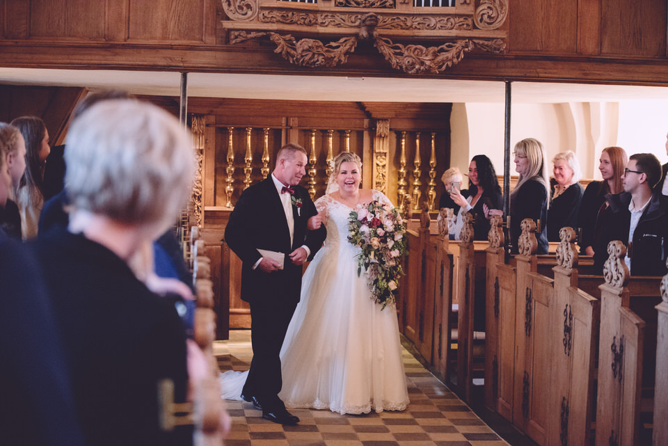 Vi mødte en spændt Anders i Lellinge Kirke omkring 12.30 – og et hav fuld af gæster. Lellinge Kirke er en utrolig flot kirke med plads til mange mennesker – men Katja og Anders havde intet problem med at fylde den helt op.